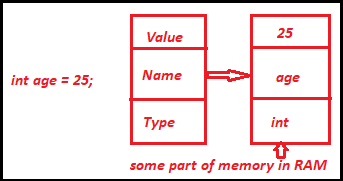When we create a variable in a .NET application, it sets aside a portion of the computer's memory (RAM). This reserved memory space is where the variable stores its data. It's similar to having a little box in the computer's memory where we can keep things safe and accessible whenever we need them in our program. The memory which it allocates for variable have three things which are mentioned below:
